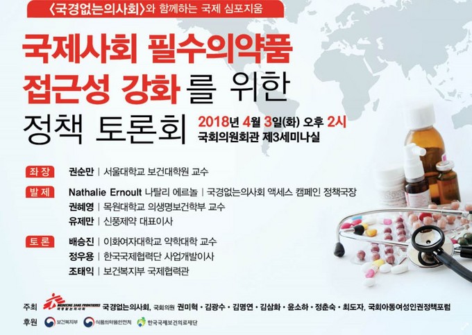 [세계뉴스] 탁병훈 기자 = 국제 인도주의 의료 구호단체 국경없는의사회가 다음달 3일 국회의원회관 제3세미나실에서 ‘국제사회 필수의약품 접근성 강화를 위한 정책 토론회’를 개최한다.
