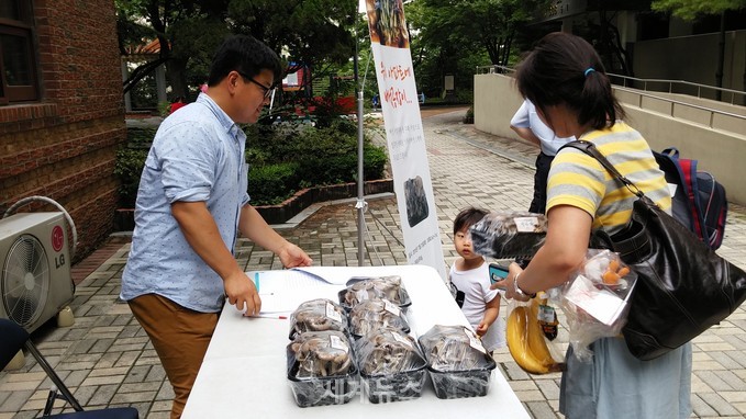 ▲ SH공사는 무공해 '느타리버섯'을 나눠주는 이벤트를 열고, 이날 500g짜리 900개를 주민들에게 나눠줬다. © 세계뉴스 |