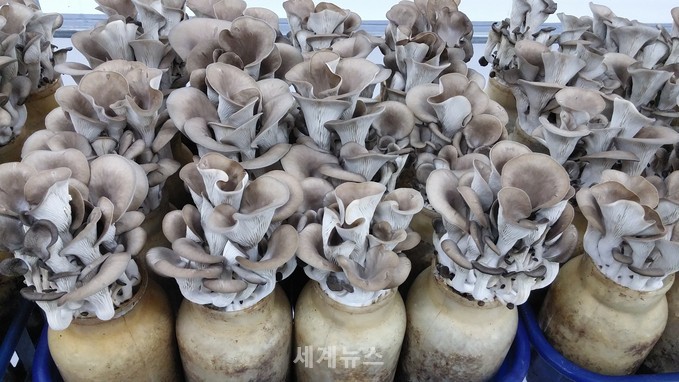 ▲ 버섯 '종균'을 들여와 10여일만에 키운 느타리버섯. 길음 뉴타운 임대아파트 40평 지하 공간에서 한달에 두번 5톤이 생산되고 있다. © 세계뉴스 |