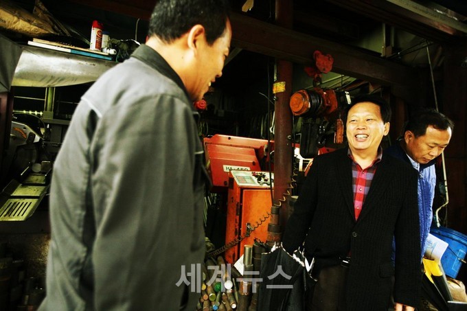 ▲ 이성 구로구청장(가운데)은 신도림동 제조업체를 방문하여 기업인들의 현장목소리를 청취했다. © 세계뉴스 |