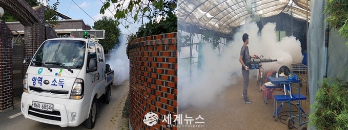 ▲ 담양군이 침수피해로 위생환경이 취약해지고, 이재민 대피소 내 밀집 생활로 인한 감염병 발생 가능성이 높아 수해지역 특별 방역을 실시하고 있다. |