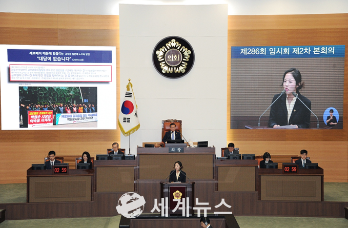 [세계뉴스] 정서영 기자 = 서울시의회 여명 의원(자유한국당·비례)이 △‘제로페이 이용하면 연말정산 시 47만원 환급·소득공제율 40%’ 홍보가 국세청과 합의되지 않은 ‘정책사기인’ 점 △서울시공무원 및 구의원에 5-10만원 제로페이 의무 결제 할당 △전국공무원노동조합마저 규탄 집회를 열게 만든 서울시의 제로페이 가맹점 가입 공무원 강제동원 실태 △서울시가 발의한 17개 제로페이 관련 조례안으로 인한 약 40억원의 손실 예상액에 대한 대책 등을 지적하고 나섰다.