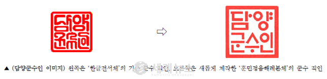 ▲ 담양군, 직인 포함 총 264개 공인 ‘훈민정음해례본체’로 전면 개각 |