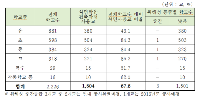 ▲ 학교 석면함유 건축자재 사용 현황 © 세계뉴스 |