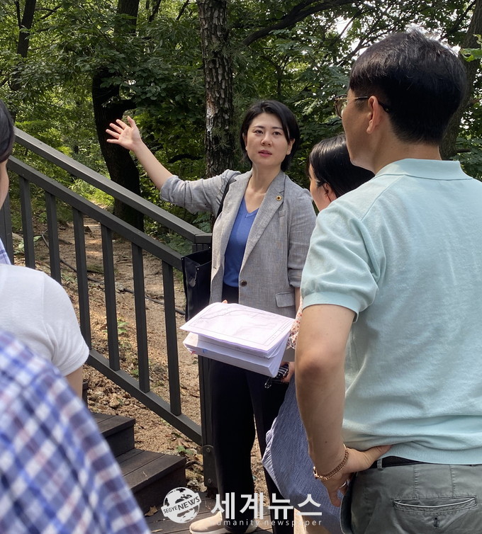 ▲ 박수빈 서울시의원이 둘레길 조성 공사가 한창인 ‘북서울꿈의숲’을 현장 점검하고 있다. |