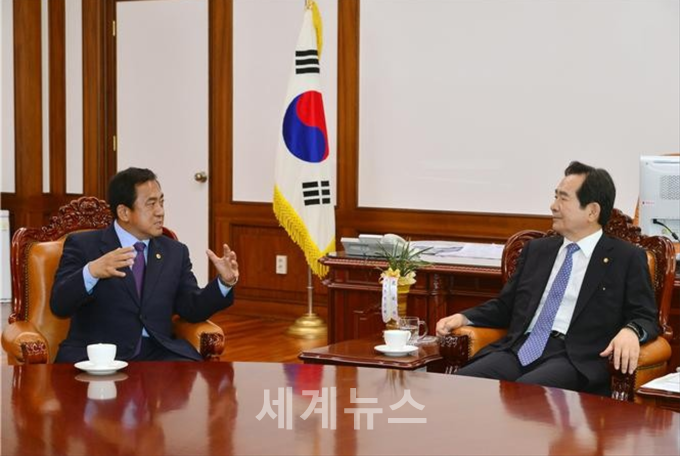 ▲ 서울시의회 더불어민주당 양준욱(강동3) 의원은 13일 정세균 국회의장실을 찾아 그동안 관철하지 못하고 표류하고 있는 '정책보좌관제' 등 이번 20대 국회에서 통과시켜 시민을 위해 일하는 서울시의회를 완성시켜달라고 주문했다. © 세계뉴스 |
