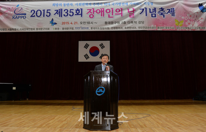 ▲ 제35회 장애인날을 맞아 인사말을 하고 있는 강병호 동대문부구청장 © 세계뉴스 |