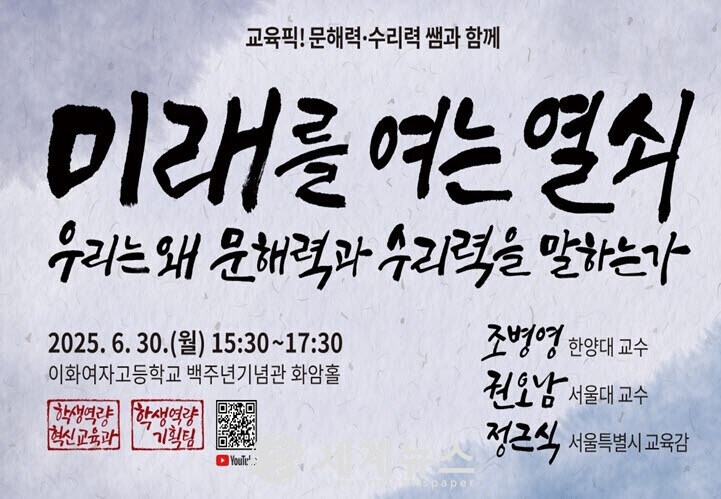 [세계뉴스 = 조홍식 기자] 서울특별시교육청이 30일 이화여고 백주년기념관에서 '교육 PICK, 문해력·수리력 쌤과 함께' 정책 포럼을 개최한다.