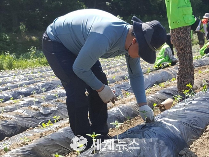 이날 자원봉사는 김종수 이사장과 이석 노조위원장 등 공단 노·사 33명이 참여해 600평의 밭에 참깨와 들깨 모종을 심었다. 또한 수박, 감자 등 농산물을 구매해 농촌의 실질적인 경제적 지원에도 나섰다.