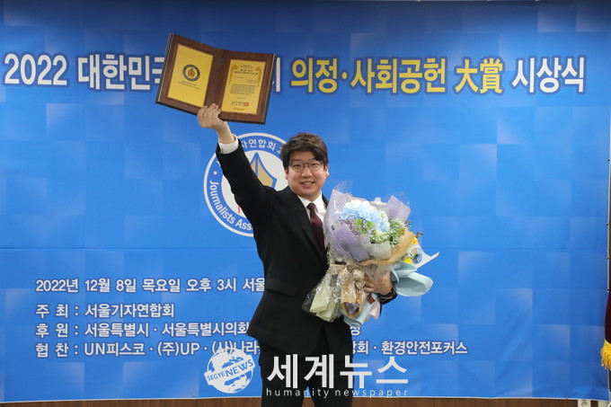 [세계뉴스 윤소라 기자] 서울특별시의회 문화체육관광위원회 문성호 의원(서대문2, 국민의힘)은 8일 서울특별시의회별관 제2대회의실에서 열린 ‘제15회 대한민국 지방자치 의정 대상’ 시상식에서 의정부문 대상을 수상했다.