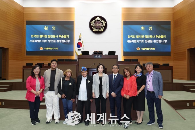 [세계뉴스 전승원 기자] 이숙자 서울특별시의회 운영위원장(국민의힘·서초2)은 23일 서울특별시의회에 필리핀 한국전 참전용사와 가족·후손들을 초청, 환담 행사를 가졌다.