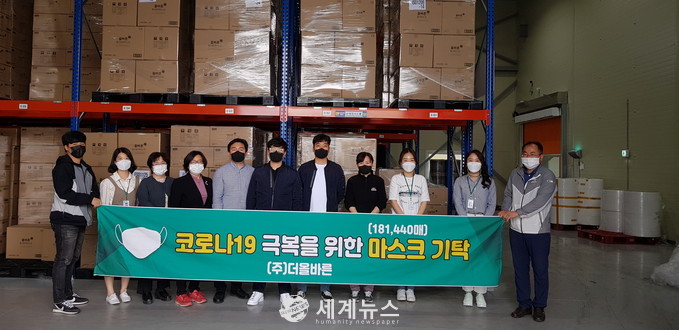 ㈜더올바른은 담양 에코산업단지에 위치하고 있으며, 보건마스크, 소독티슈 등을 제작하는 기업이며, 지난 3월에도 코로나19 방역에 어려움을 겪고 있는 초록우산어린이재단에 220만원 상당 KF94 소형마스크를 기탁하는 등 끊임없는 사랑을 전하고 있다.