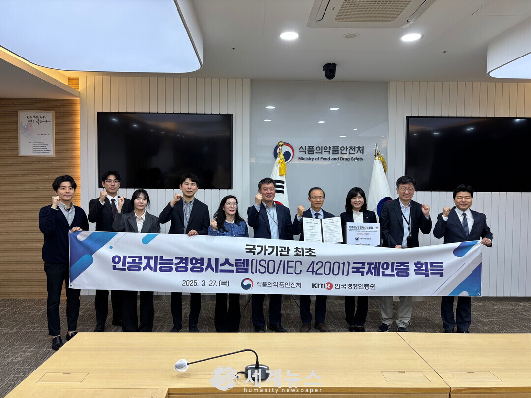 이번 인증은 식약처가 국제적 수준의 AI 시스템 관리 역량을 인정받은 것으로, 한국경영인증원으로부터 인증서를 발급받았다.