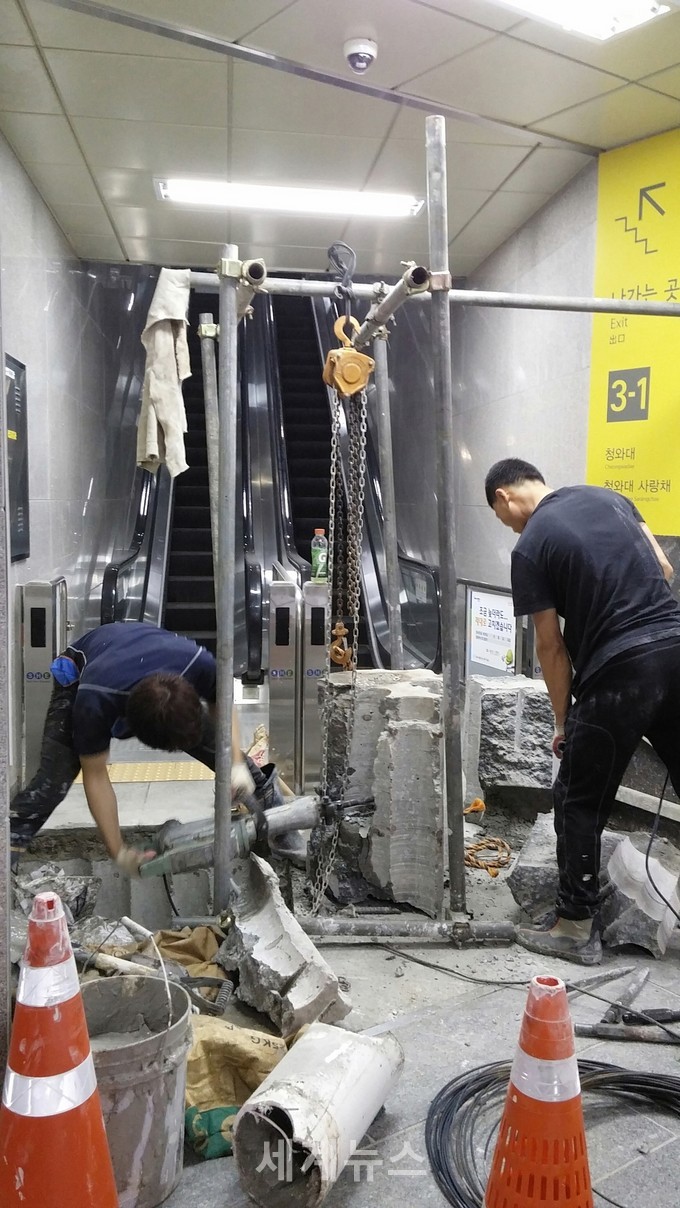 ▲ 에스컬레이터 공사 현장 (경복궁역) © 세계뉴스 |