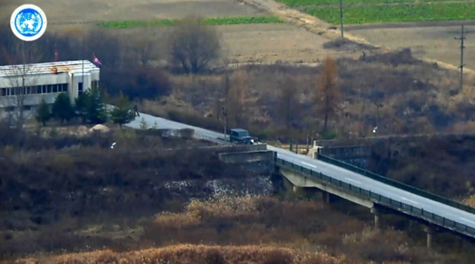 ▲ 지난 13일 판문점 공동경비구역(JSA)에서 북한 병사가 지프 차량을 몰고 남쪽으로 달리고 있다. 유엔군 사령부가 22일 공개한 당시 CCTV장면. (유엔군사령부 제공) © 세계뉴스 |