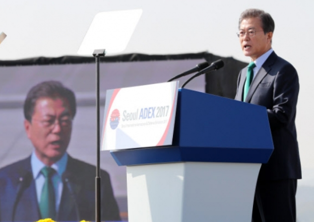 ▲ '서울 ADEX 2017' 기념사하는 문 대통령. '서울 ADEX 2017'은 국내 최대 규모의 방산 전시회로 올해 국내외 33개국 405개 업체가 참여해 22일까지 열린다. © 세계뉴스 |