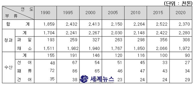 ▲ 가락시장 내 5개년별·부류별 거래물량. |