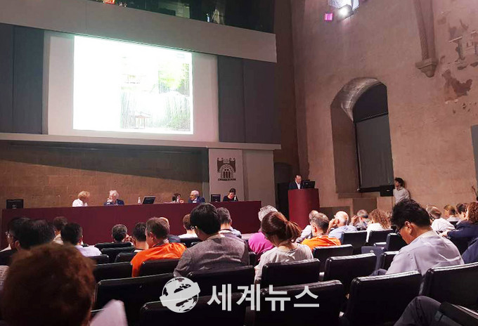 ▲ 최형식 담양군수가 국제슬로시티연맹 본부가 있는 이탈리아 오르비에또에서 열린 연맹 총회에 참석해 ‘담양학과 슬로 에듀케이션’을 주제로 담양학에 담겨있는 느림의 미학, 이념과 정신의 연계성에 대해 발표하고 있다. |