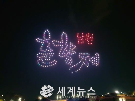 ▲ 남원 춘향제에서 드론 300여대 활용하여 요천 밤하늘에 드론쇼가 펼쳐지고 있다. |