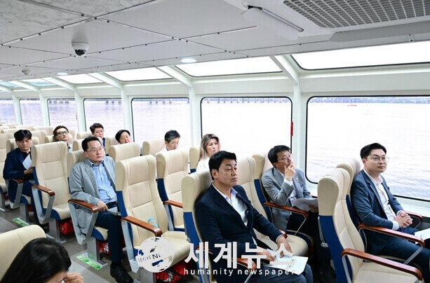 [세계뉴스 = 윤소라 기자] 27일 서울시의회 더불어민주당은 오는 9월 18일 정식 운항을 앞둔 한강버스와 여의도선착장을 현장 점검했다. 이번 점검은 시범운항 기간 동안 제기된 문제점을 확인하고 서울시의 대책 및 향후 운영 계획을 점검하기 위해 마련됐다.