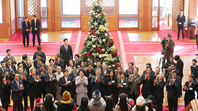 ▲ 문재인 대통령은 7일 오후 2시 국내 주요 기부·나눔 단체 15곳의 대표와 홍보대사들을 청와대 본관으로 초청해 성금 전달 및 격려하는 시간을 가졌다. (사진=청와대 제공) |