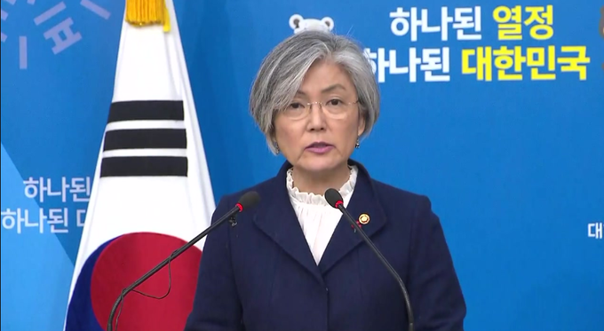 강경화 외교부 장관은 이날 오후 2시 서울 외교부 청사에서 열린 '위안부 합의 처리 방향 정부 입장 발표'에서 "2015년 합의가 양국 간의 공식 합의였다는 사실은 부인할 수 없다"며 "이를 감안해 우리 정부는 동 합의와 관련해 일본 정부에 대해 재협상은 요구하지 않을 것"이라고 말했다.