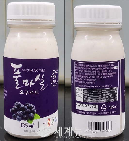 [세계뉴스 전승원 기자] 식품의약품안전처(처장 오유경)는 유가공업체인 ‘풀마실유가공영농조합법인(경북 구미시 소재)’이 제조·판매한 ‘구미별미풀마실블루베리 요구르트(발효유)’에서 식중독균인 황색포도상구균이 검출되어 해당 제품을 판매 중단하고 회수 조치했다.