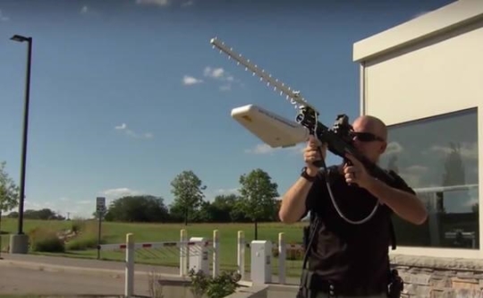 ▲ 비행중인 드론을 강제 착륙시키려면 전파총으로 드론착륙 때까지 겨냥하고 있어야 한다. © 세계뉴스 |