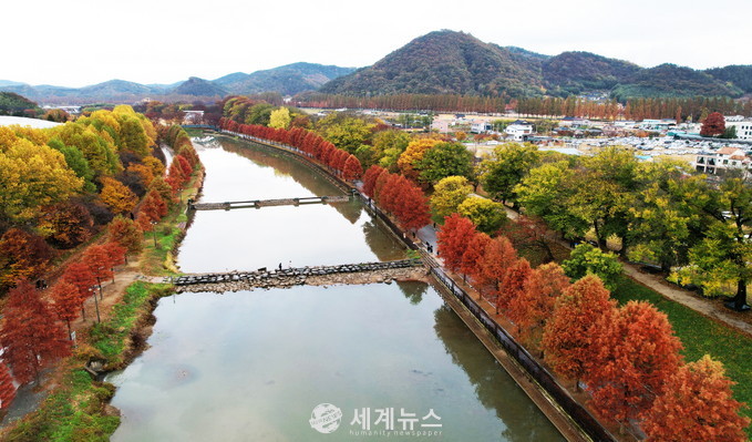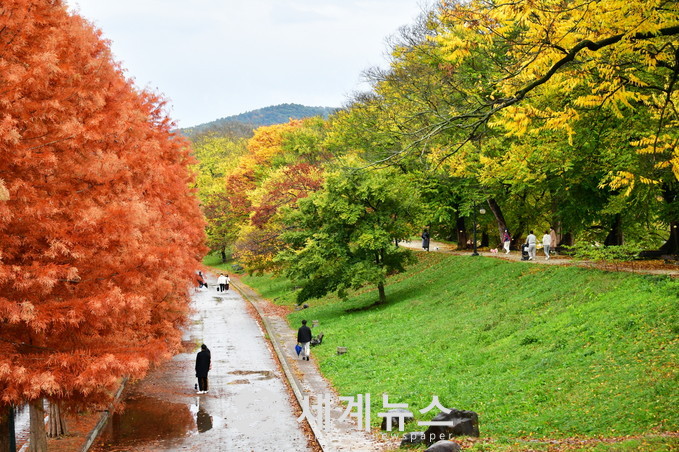▲ 천연기념물 제366호 담양 관방제림은 조선시대 홍수 피해를 막아 백성들 살림을 살피고자 조성했던 제방숲으로, 이 숲길에는 푸조나무, 팽나무 등 수백 년을 살아온 나무들이 고즈넉한 가을의 풍경을 만들어낸다. 저 넘어에 메타세콰이어길이 이어져 있다. |