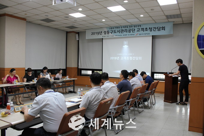 [세계뉴스] 조홍식 기자 = 성동구도시관리공단(이사장 김종수)은 지난 5일 공단 시설 이용 고객 5명을 초청하여 고객과 소통하며 함께 더 나은 공단을 만들기 위한 ‘2019년 고객초청 간담회 ’를 개최했다.