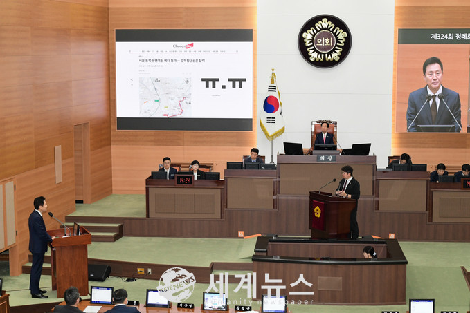 ▲ 문성호 서울시의원이 오세훈 시장을 상대로 시정질문을 하고 있다. |