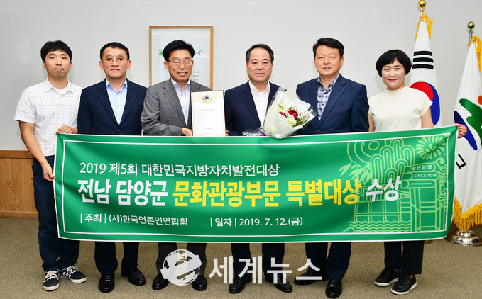 [세계뉴스] 한차수 기자 = 담양군(군수 최형식)은 지난 12일 (사)한국언론인연합회가 주최하고 행정안전부가 후원하는 제5회 대한민국지방자치 발전대상에서 문화관광부문 특별대상을 수상했다.