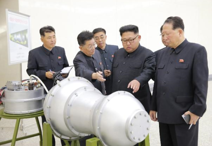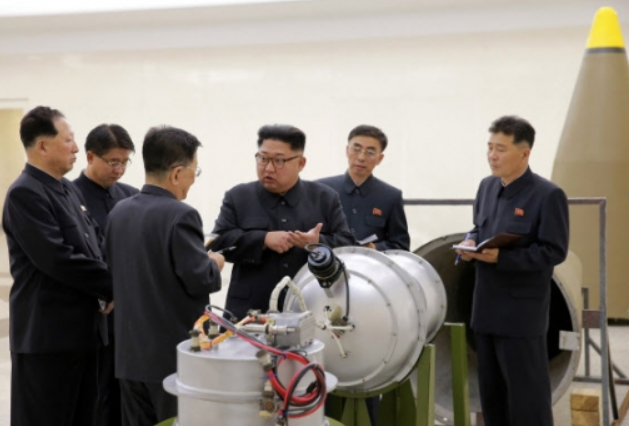북한 조선중앙통신은 이날 김정은 노동당 위원장이 핵무기병기화사업을 현지지도하면서 "새로 제작한 대륙간탄도로켓 전투부에 장착할 수소탄을 보아주시었다"면서 재진입체로 보이는 탄두부에 들어갈 용도로 보이는 핵폭발 장치 사진과 '화성-14형 핵탄두(수소탄)'라고 쓰인 도면을 공개했다.