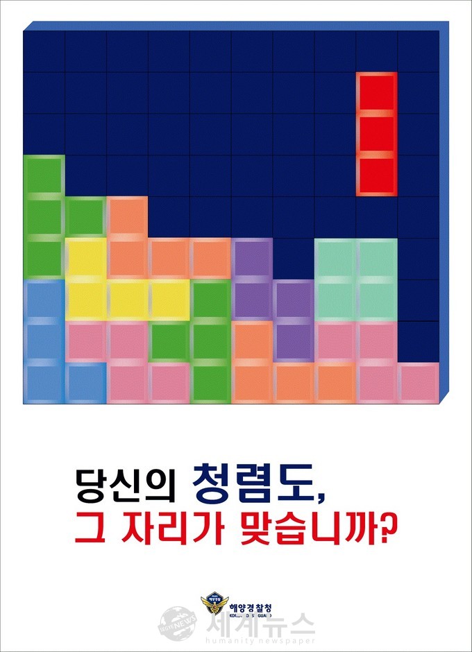 [세계뉴스 한차수 기자] 서해지방해양경찰청(청장 김도준)이 자체 실시한 ‘청렴’ 포스터 및 표어 공모전 개최 결과, 포스터 부문에 “당신의 청렴도 그 자리가 맞습니까?” 등이 우수작으로 선정됐다.