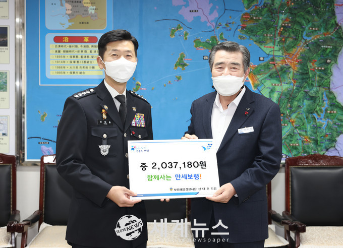 [세계뉴스 윤준필 기자] 성대훈 보령해양경찰서장은 코로나 19로 어려움을 겪고 있는 이웃을 위해 성금 2,037,180원을 보령시에 기탁했다.