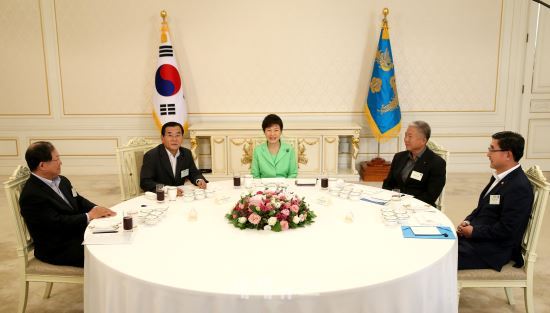 박 대통령은 이날 청와대로 노사정 대표 4명을 초청해 오찬을 함께한 자리에서 "정부는 앞으로 대타협의 정신, 취지를 존중하면서 필요한 후속조치들을 착실히 해나가겠다"며 이같이 말했다.