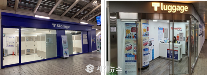 ▲ 역사 내 설치된 생활물류센터. 개인보관창고 T-Storage(좌측)・유인보관소 T-Luggage(우측). |