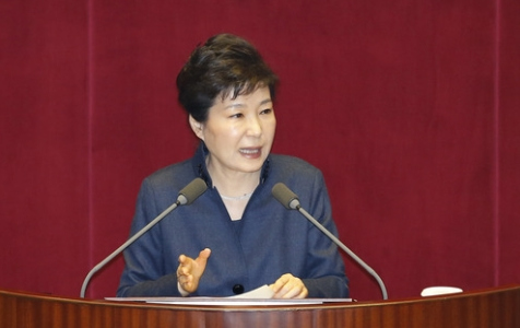 ▲ 20대 국회 개헌 연설을 하고 박근혜 대통령. © 세계뉴스 |