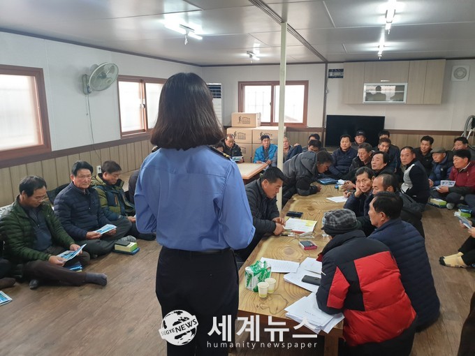 [세계뉴스 윤준필 기자] 부안해양경찰서(서장 김동진)는 23일 10시 부안군 가력도 어민회관에서 해양종사자 40여명을 대상으로 청정바다 사수를 위한 해양오염 예방교육을 실시하였다.