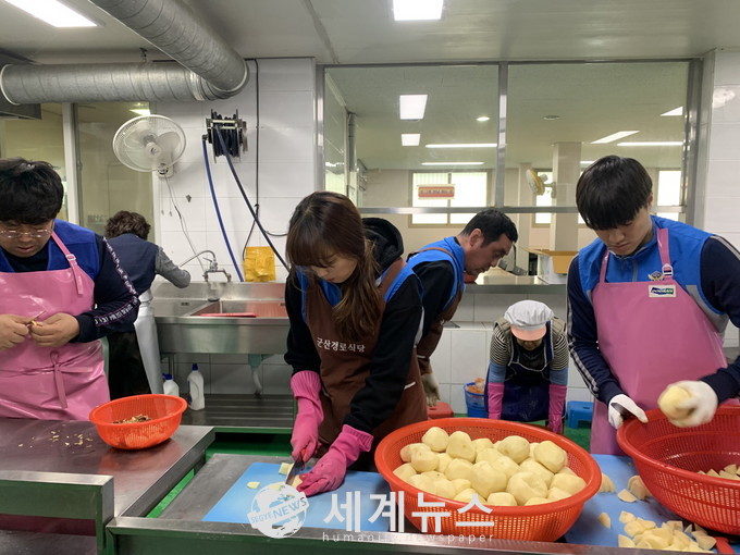 특히 이날 사랑나눔 배식 봉사활동에는 의무경찰 대원들이 참가해 서투른 솜씨지만 식재료를 다듬고 배식과 청소를 하며 구슬땀을 흘렸다.
