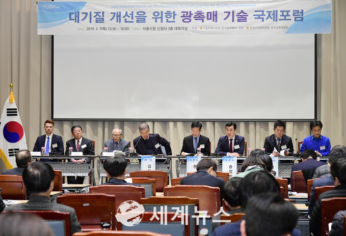 [세계뉴스] 정서영 기자 = 서울특별시의회 환경수자원위원회(위원장 김태수)는 7일 서울시청 대회의실에서 ‘대기질 개선을 위한 광촉매 기술 국제포럼’을 개최하고 미세먼지 저감을 위한 외국의 광촉매 활용 기술과 향후 전망을 논의하는 자리를 가졌다.