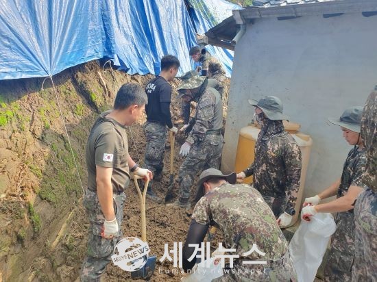 7월에 내린 546mm라는 기록적인 폭우로 인해서 각종 피해가 발생한 가운데, 사람의 손길이 필요한 취약 가구의 피해 복구를 위해서 장병들이 삽을 들고 나섰다.