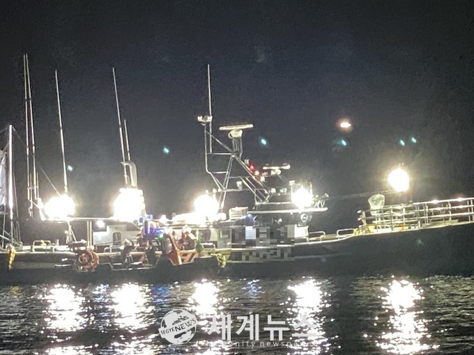 보령해경에 따르면 지난 28일 밤 10시경 보령시 대천항으로부터 서쪽 약 80km 떨어진 외연도 인근 해상에서 불법조업이 의심되는 어선이 있다는 민원신고를 접수받고 경비함정 511함이 현장으로 이동했다.