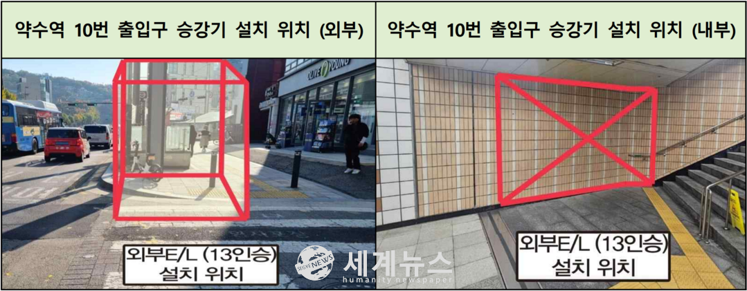 약수역은 서울 지하철 3호선과 6호선이 교차하는 환승역으로, 하루 평균 3만 명 이상이 이용하고 있다. 그러나 10번 출입구는 승강 편의시설이 전무하며, 많은 계단으로 인해 장애인, 어르신 등 교통약자들이 큰 불편을 겪고 있다.