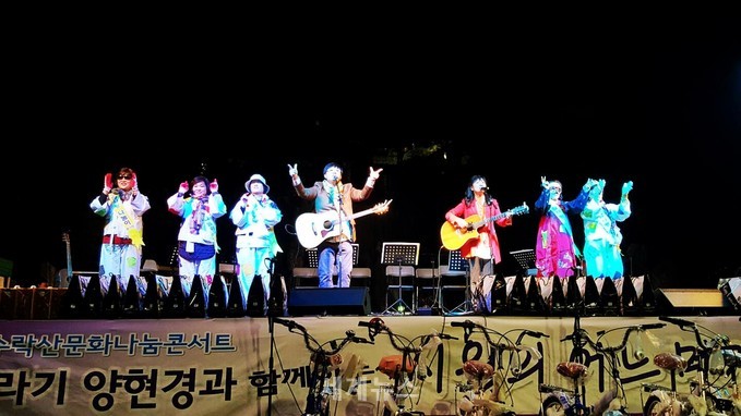 ▲ 31일 ‘제1회 수락산문화나눔콘서트’ 에서 배따라기 양현경 가수가 '아빠와 크레파스'를 관객들과 함께 열창하고 있다. © 세계뉴스 |