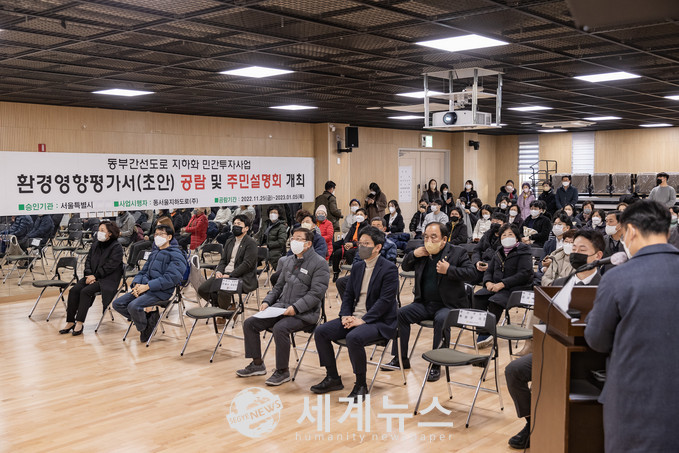 [세계뉴스 전승원 기자] 5일 광진구(구청장 김경호)는 군자동 주민센터에서 ‘동부간선도로 지하화 민간투자사업’의 환경영향평가에 대한 주민설명회를 개최했다.