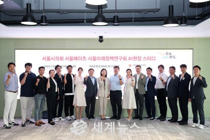 [세계뉴스 정서영 기자] 서울특별시의회 의원연구단체 서울미래정책연구회 박상혁 대표의원(국민의힘, 서초1)은 소속 의원들(김길영·김동욱·서상열·이상욱·장태용·황철규)과 4차 산업 연구를 위해 카카오아지트를 방문했다.