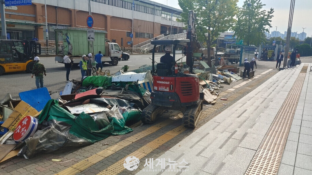 [세계뉴스 = 조홍식 기자] 서울 광진구(구청장 김경호)가 지난 21일 동서울터미널 앞 불법노점 6곳을 정비했다.