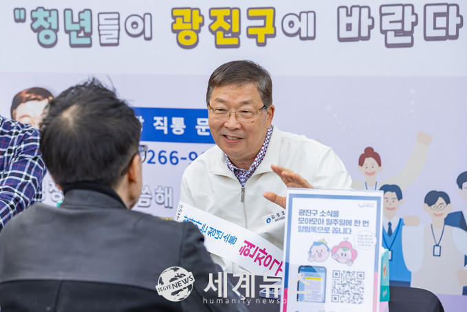 [세계뉴스 조홍식 기자] 서울 광진구(구청장 김경호)가 5일 오후 3시부터 도심 한복판에서 청년들과 소통의 시간을 가졌다. 지난 7월에 화양동주민센터에서 첫 번째 만남에 이어 두 번째다.