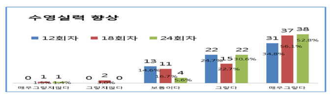 이번 시범사업을 통해 60명(83.2%)의 학생들이 다른 수업보다 수영 수업이 재미있다고 대답했다. 수영 수업을 마친 후 50명(69.4%)이 다른 스포츠 종목도 배우고 싶다는 추가 대답도 나왔다.